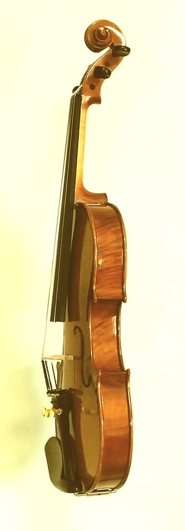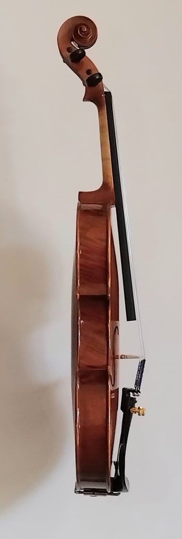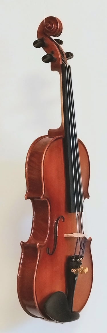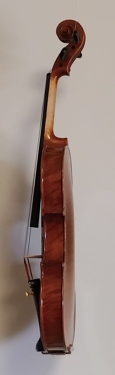 Skrzypce po przeglądzie lutniczym, manufakturowe, rozegrane. Nie ma daty powstania instrumentu; sądzę że może to być 2015-2020rok. Materiał drewniany klasyczny: jawor(bez "fali")i świerk. Garnitur bukszpanowy. Skrzypce wyróżniają się od masowej produkcji naturalnym, spirytusowym lakierem-nie meblową chemią-wykończonym w konwencji old. Instrument klasy uczniowskiej o świetnych walorach dźwiękowych. W cenie 2500 zł zawiera się futerał oraz nowy smyczek.